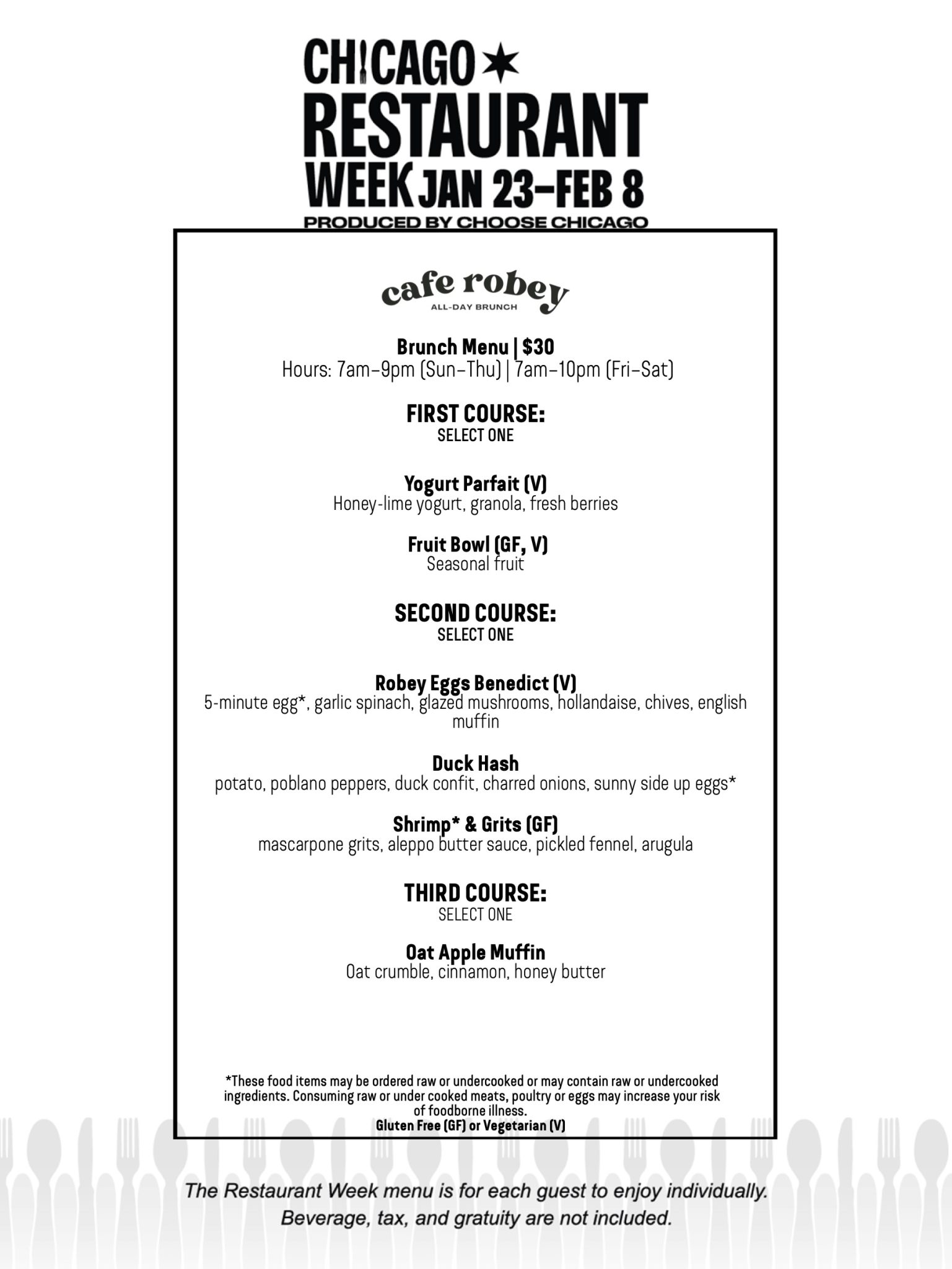 * These food items may be ordered raw or undercooked, or may contain raw or undercooked ingredients. Consuming raw or undercooked meats, poultry, seafood, shellfish, or eggs may increase your risk of foodborne illness.